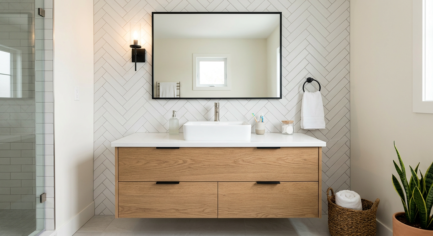 Experience the power of AI-Architectures.com. Describe your ideal bathroom vanity upgrade below, and watch as our advanced architectural engine restructures your space instantly.